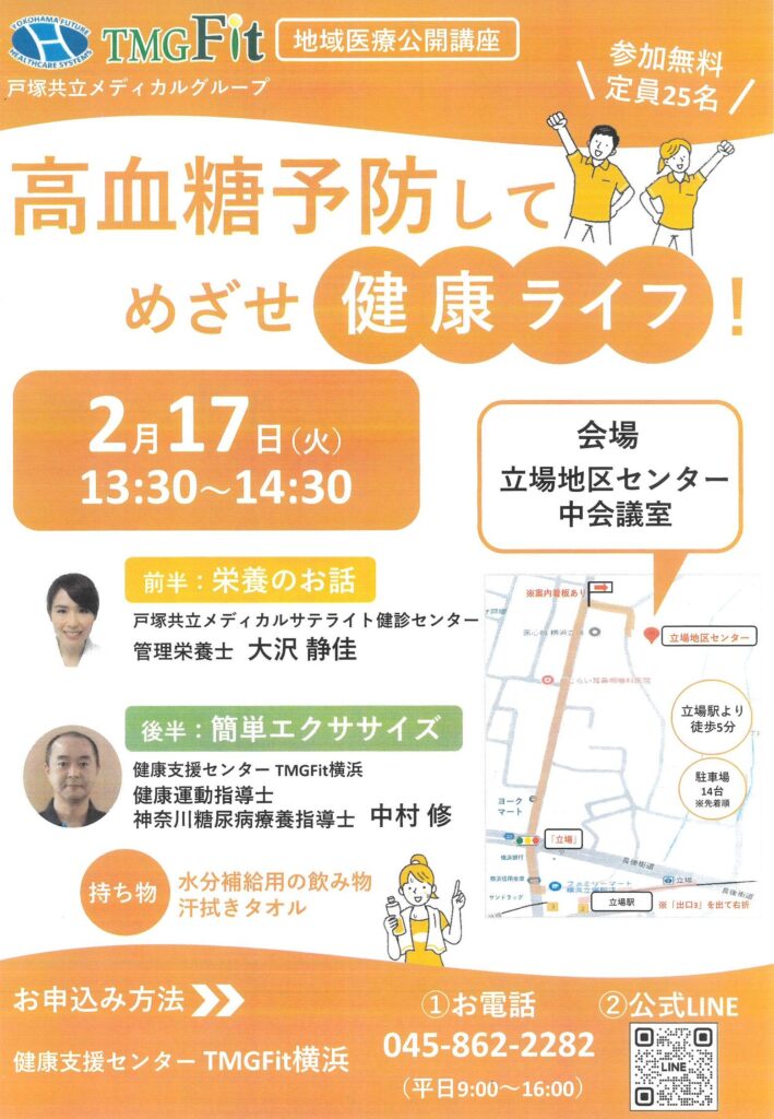 2/17(火)、無料公開講座開催します! 2026.01.29 どなたでもご参加いただけます! お問合せ・ご予約➡(健康支援センターTMGFit)045-862-2282 へご連絡ください! 皆様のご参加、心よりお待ちしております。