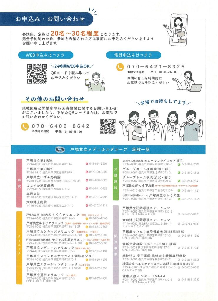 当施設が属している戸塚共立メディカルグループでは、地域医療公開講座を定期的に実施しております。